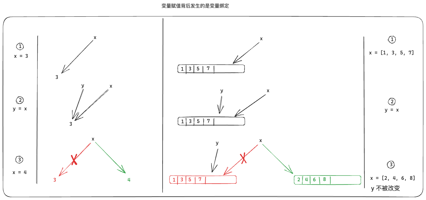 x = <value>出现在某局部作用域,如果 x 还不是局部变量,行为取决于全局变量 x 是否被定义:- 如果全局变量 x 是未定义,此次赋值会在该作用域创建一个名为 x 的新局部变量;