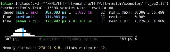 | 三维数组 | using Testrng = MersenneTwister(1234)a = rand(rng,10000,100,100);@btime ifft(fft(a)); | 12.792 s (14 allocations: 4.47 GiB) | 10.783 s (60 allocations: 4.47 GiB) |