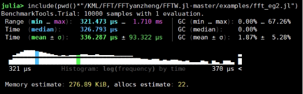 | 向量 | using Testrng = MersenneTwister(1234)a = rand(rng,100000000);@btime ifft(fft(a)); | 17.251 s (14 allocations: 4.47 GiB) | 16.171 s (56 allocations: 4.47 GiB) |