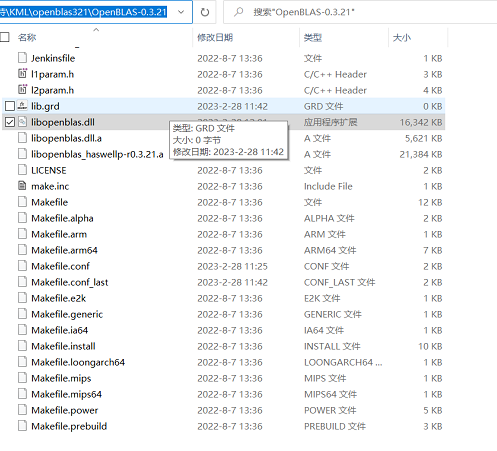 Generating forwards to D:/KML/openblas321/OpenBLAS-0.3.21/libopenblas.dll