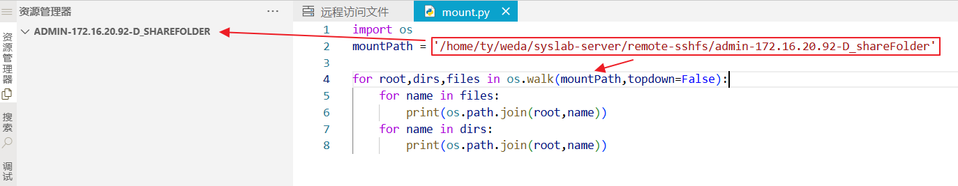 将文件路径改为挂载目录下的路径,即可访问远程 PC 上对应文件