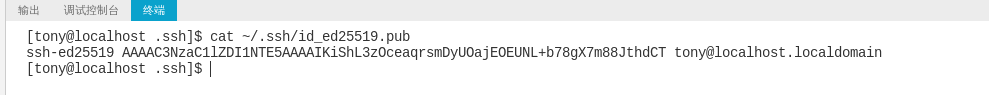 # 方式二:在 Linux 机器中打开终端输入如下命令,获取公钥内容