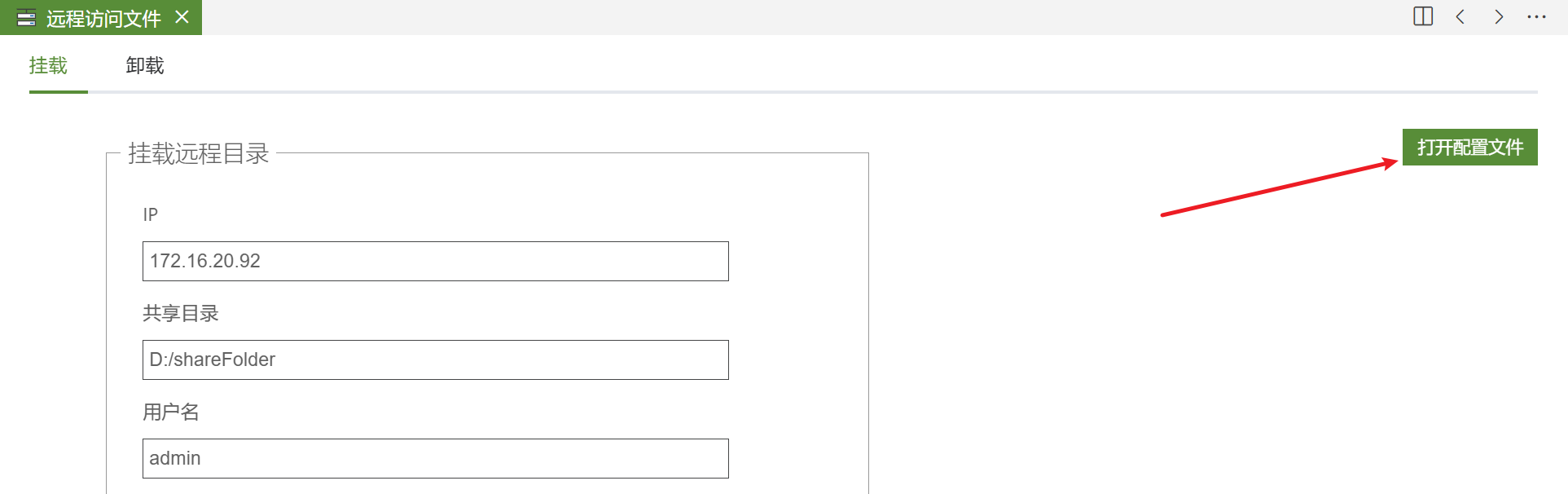 - 通过界面方式挂载/卸载远程目录会同步到配置文件中。