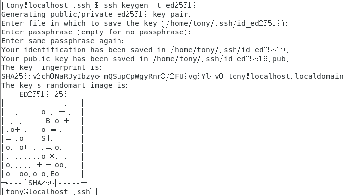 # 生成密钥文件 ssh-keygen -t ed25519这时一直按回车键接受默认值即可,然后会在 $HOME/.ssh/目录下生成 id_ed25519 私钥文件和 id_ed25519.pub 公钥文件。