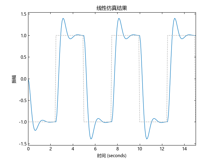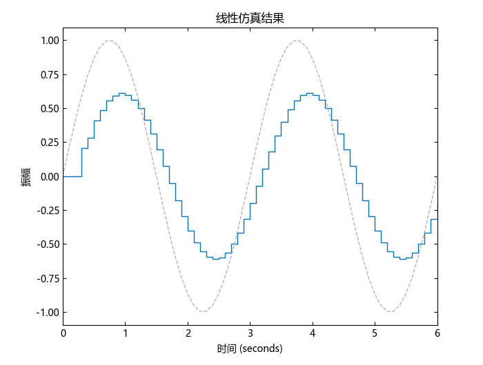 当想用 lsim 模拟一个离散时间模型时,时间步长必须等于模型的采样时间。为 gensig 提供这个采样时间以生成合适的信号。