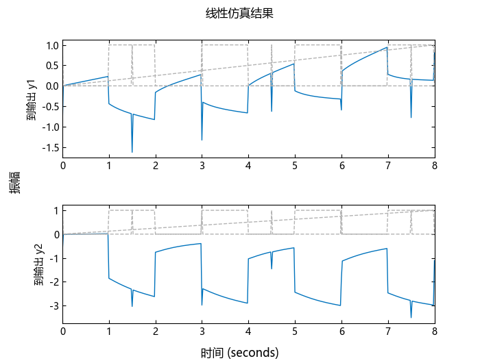 要用 lsim 模拟多输入系统,可以将输入信号作为矩阵提供,其行表示应用于每个输入的信号。
