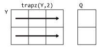 - trapz(Y,2) 对 Y 的行中的连续元素进行处理并返回向量。