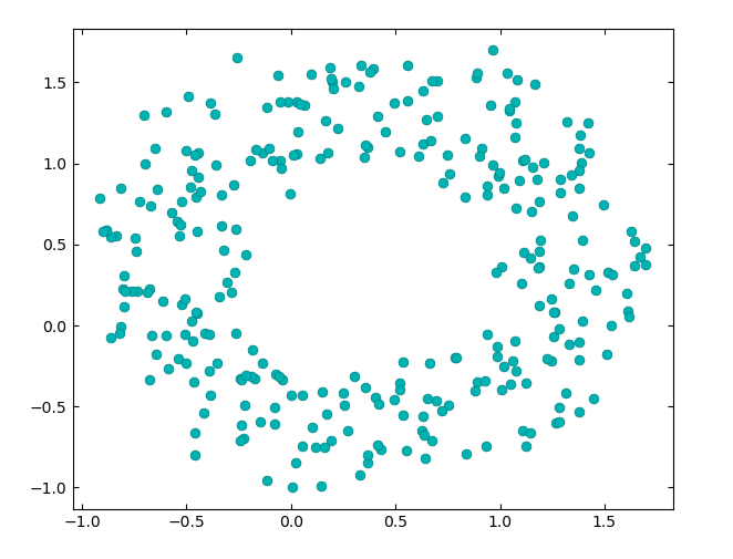 scatter(x, y, s; linewidths=1.5, markeredgecolor=[0 0.5 0.5], markerfacecolor=[0 0.7 0.7])