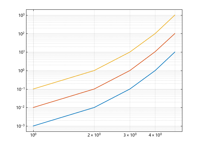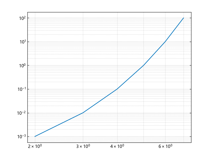 示例: loglog([1, 2],[3, 4],linestyle=":")