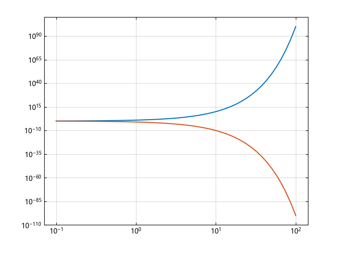 示例: loglog([1, 2],[3, 4],alpha=0.2)