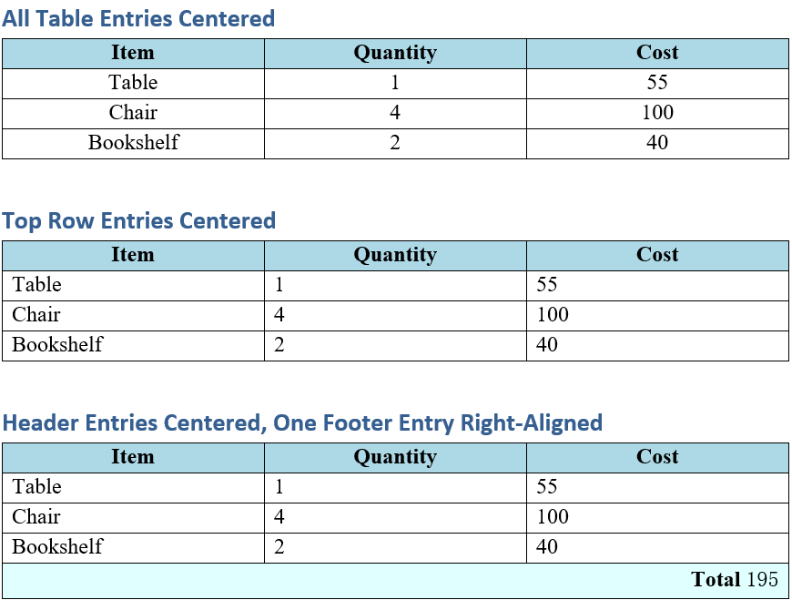 使用格式属性来对齐表格内容。
