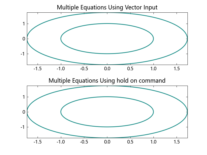 如果希望绘制多个方程,可以通过传入一个向量,或者使用 hold("on") 之后连续在一张图上画多次。如果指定 linestyle 或其他关键字参数,这会应用到所有图上。你不可以为每张图指定不同的关键字参数。