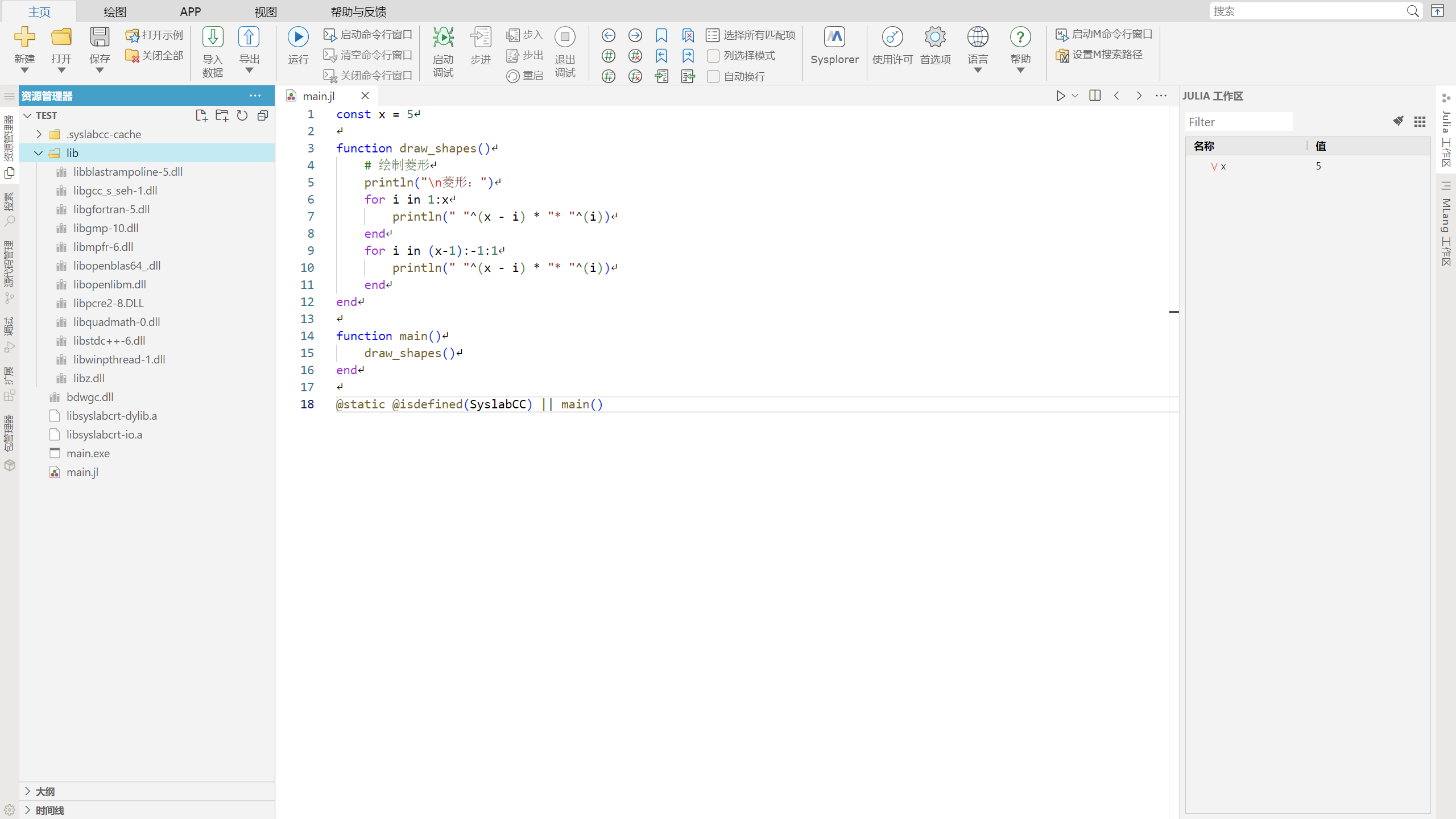 因此我们修改 main.jl 为如下形式,这样不影响代码生成,也便于在 Julia 编程环境中调试 main() 函数: