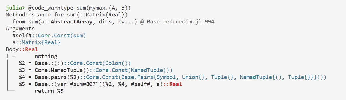 @btime mysum(pairs) # 228.995 ns (1 allocation: 32 bytes)