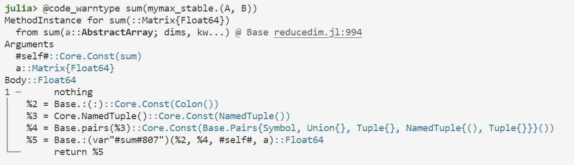 @btime mysum(pairs) # 860.714 ns (1 allocation: 32 bytes)