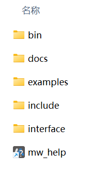 - docs:SDK 帮助文档,基于 Qt 帮助文档框架开发的帮助文档工具,双击文件夹中的应用程序或 mw_help 快捷方式即可打开;