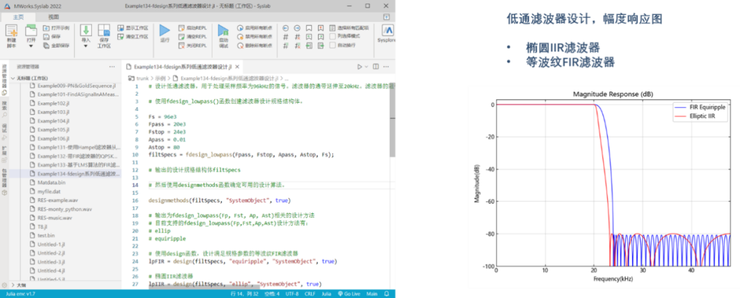 信号处理库、DSP系统库、通信库等三个专业工具箱,已经内置到 Syslab 软件。其中,新增函数列表参见附录。