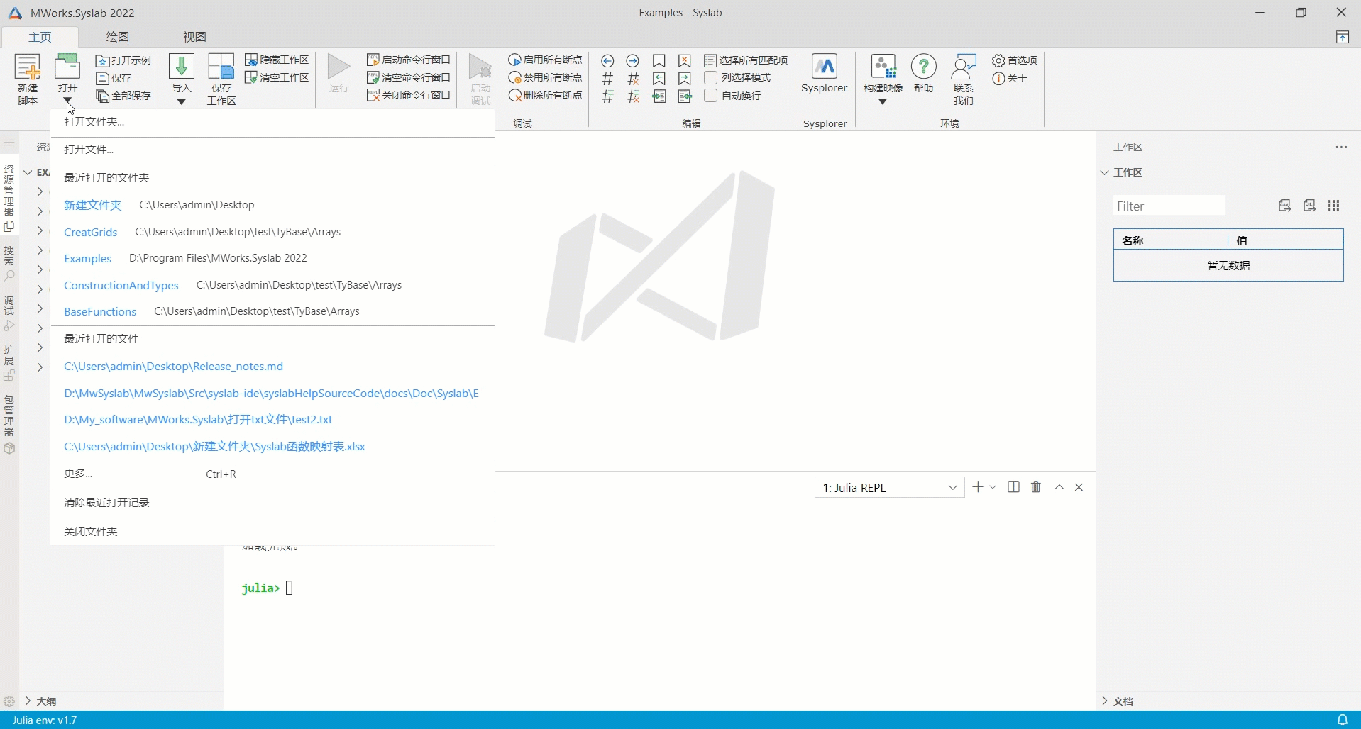 - 启动Syslab软件,将使用完全独立的.julia环境,不会对用户原有的.julia环境造成影响;