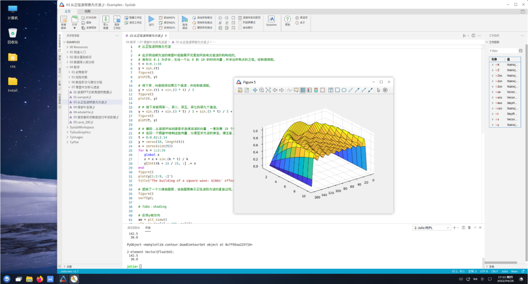 在 Syslab 2022a 基础上,针对基础、图形、图像、数学、曲线拟合等函数库进行了一轮改进,新增了一批高频使用函数: