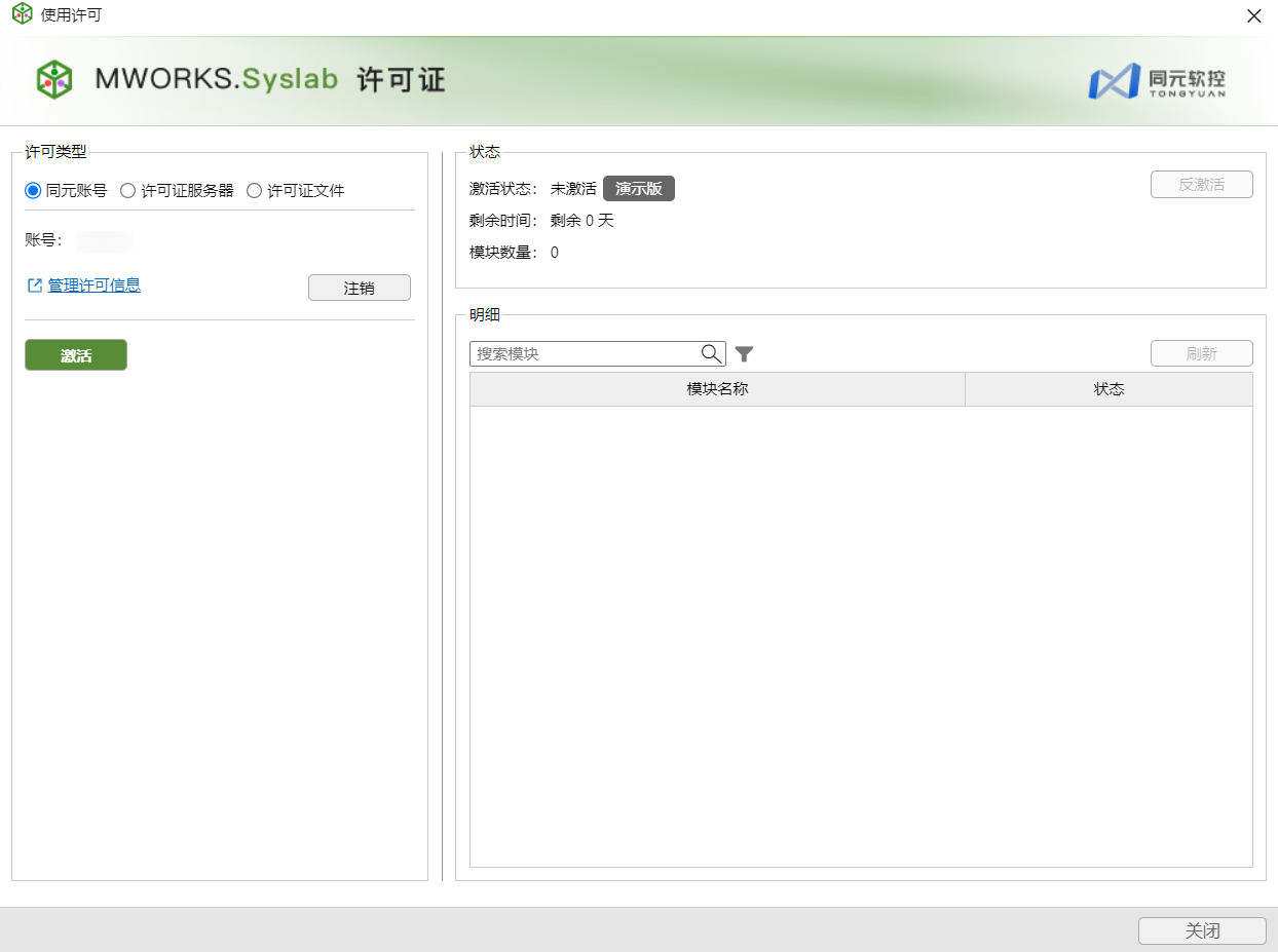 Syslab 采用 License 文件方式进行授权,目前提供同元账号、许可证服务器、许可证文件三种激活方式。