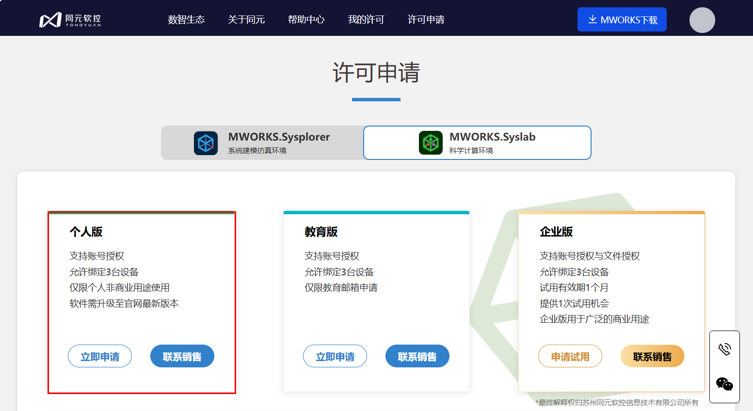 Syslab 同元账号使用许可配置步骤如下: