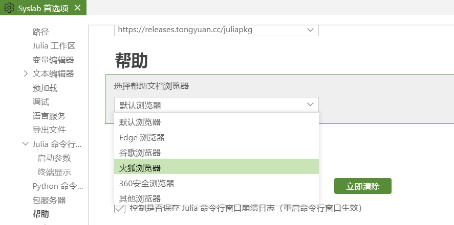 如果帮助文档打不开,请单击首选项打开选项设置页面,并在帮助分组中选择本机已安装的浏览器,如“火狐浏览器”。