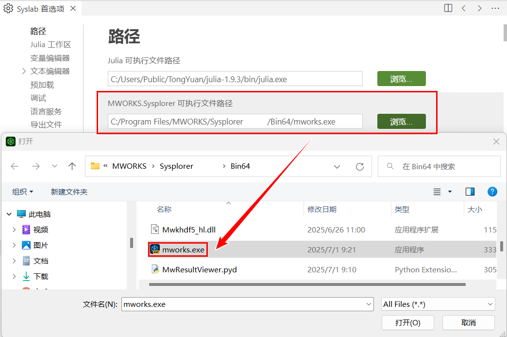 (Sysplorer安装路径)\Bin64\mworks.exe,如果未安装 Sysplorer,则此选项为空。B. 修改方式