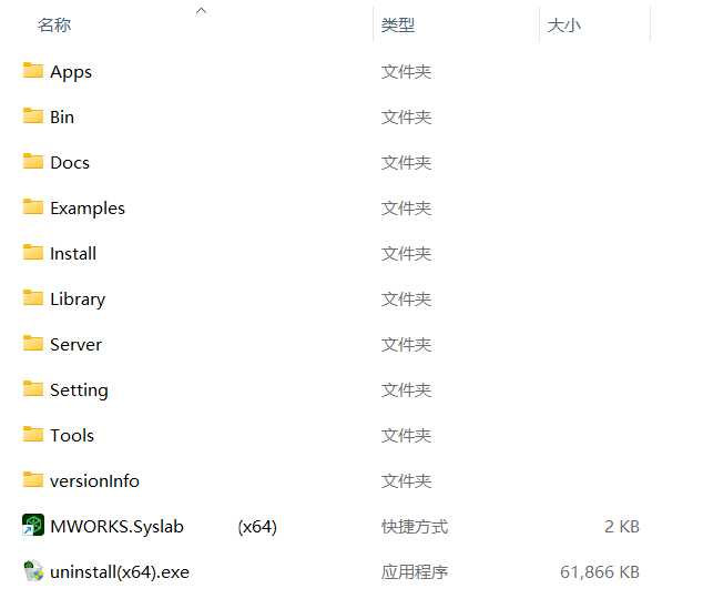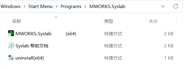 程序组 MWORKS.Syslab。其中包含 uninstall(x64) 快捷方式;