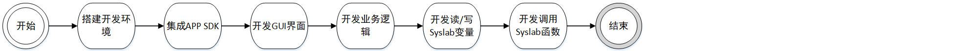 - 用户在 APP 的图形界面操作,以获取 Syslab 变量列表为例,APP 调用 APP SDK 的获取变量列表 API:MwGetVariables