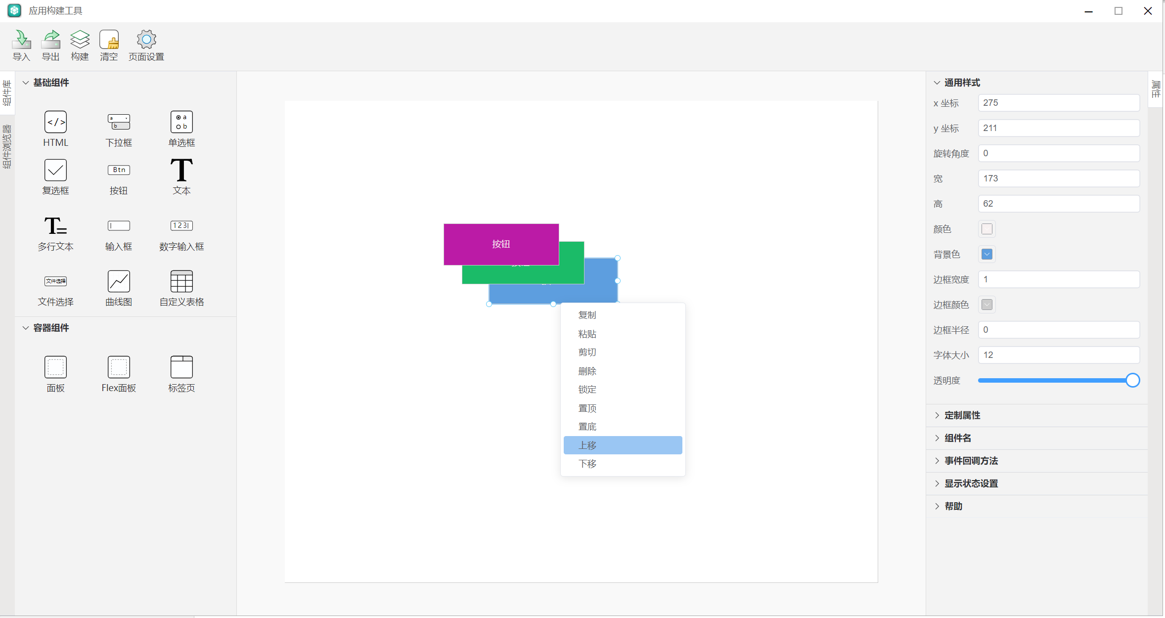 单击右键上移底菜单项后,所选组件的层级向上提升一层。
