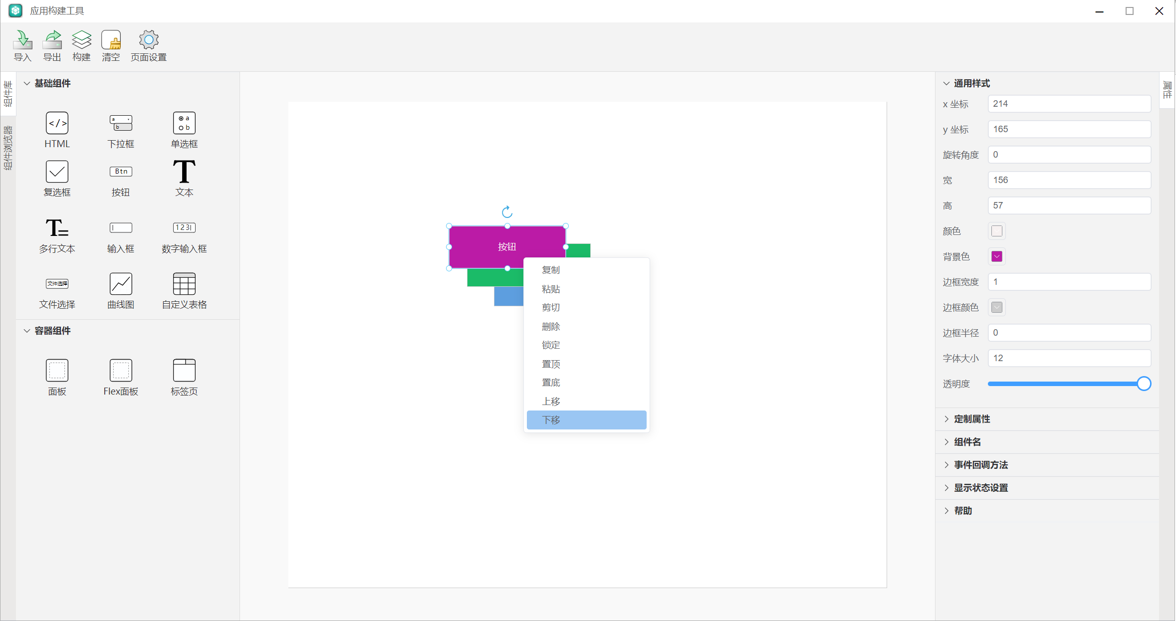单击右键下移底菜单项后,所选组件的层级向下提升一层。