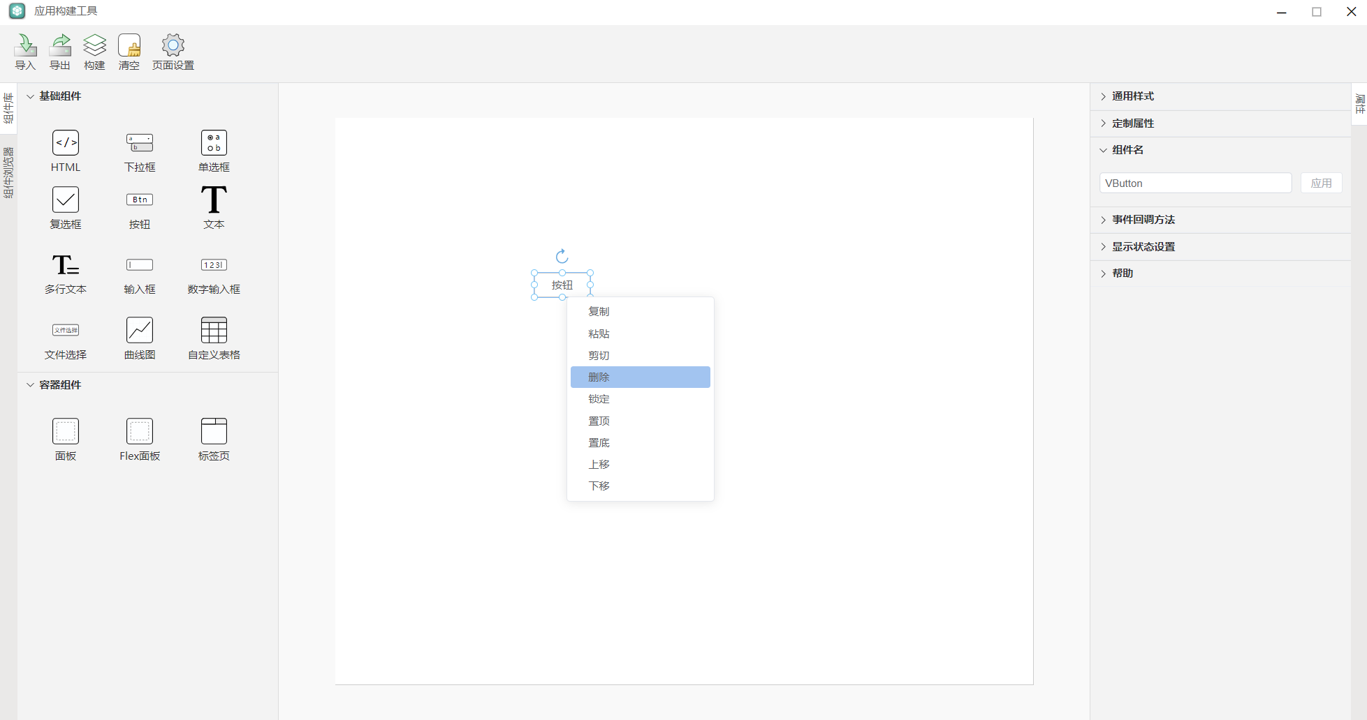 单击右键删除菜单项后,选中的组件将会被从画布中移除。
