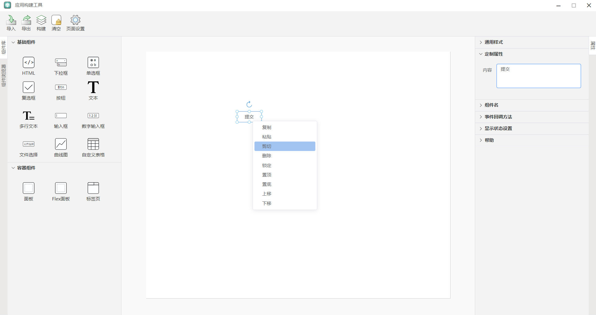 单击右键剪切菜单项后,选中的组件将会被移除,剪贴板中将会保留被剪切的组件,可粘贴使用。