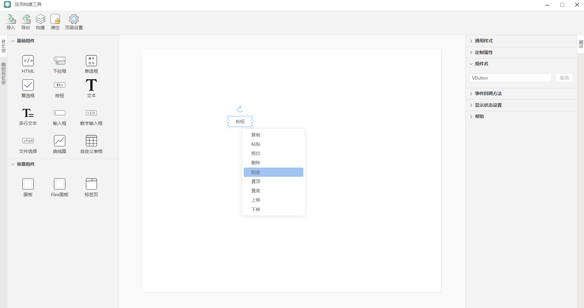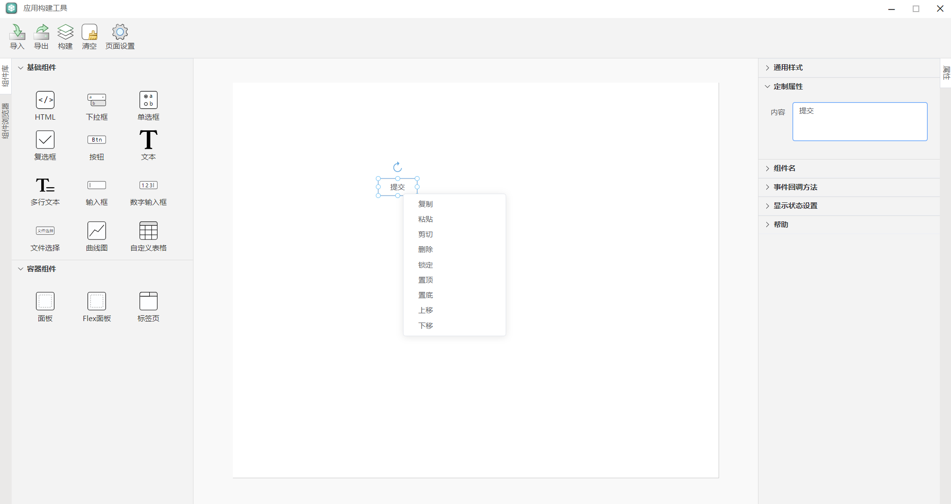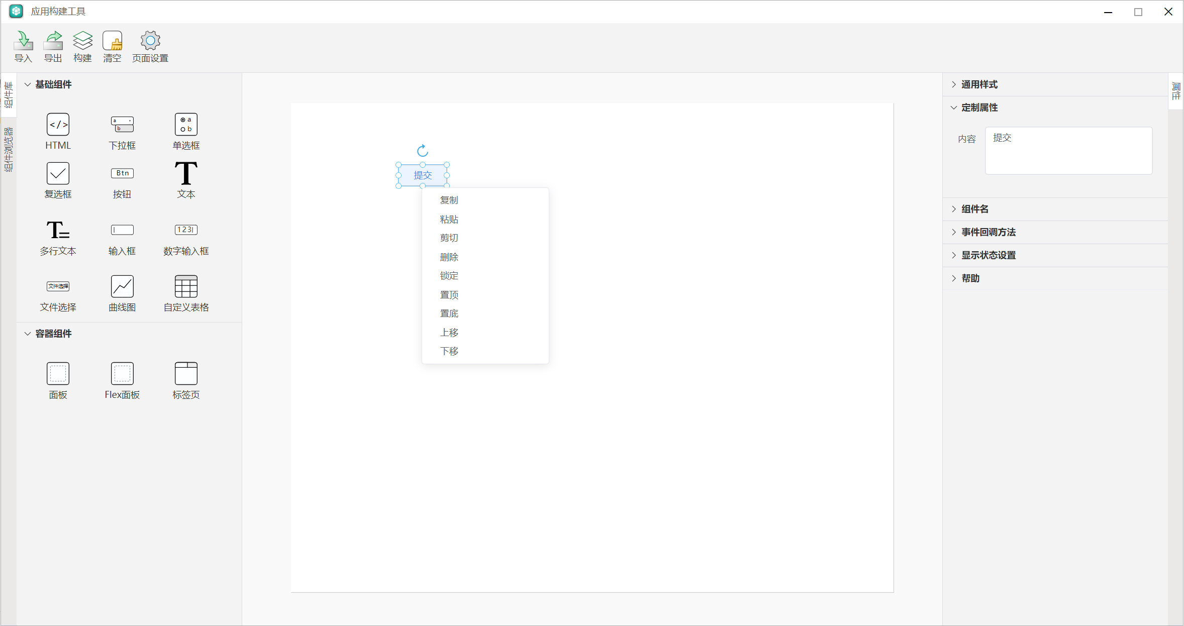 右键菜单提供了部分对组件的操作,比如复制,粘贴等常用操作。在画布中,鼠标右键在组件上,可以打开右键菜单。