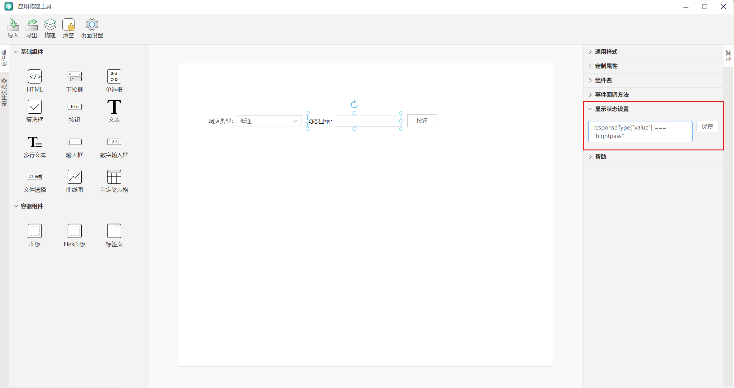 显示状态设置,用于设置组件的显示条件,输入 JavaScript 表达式,表达式为 true 则展示,false 不显示。