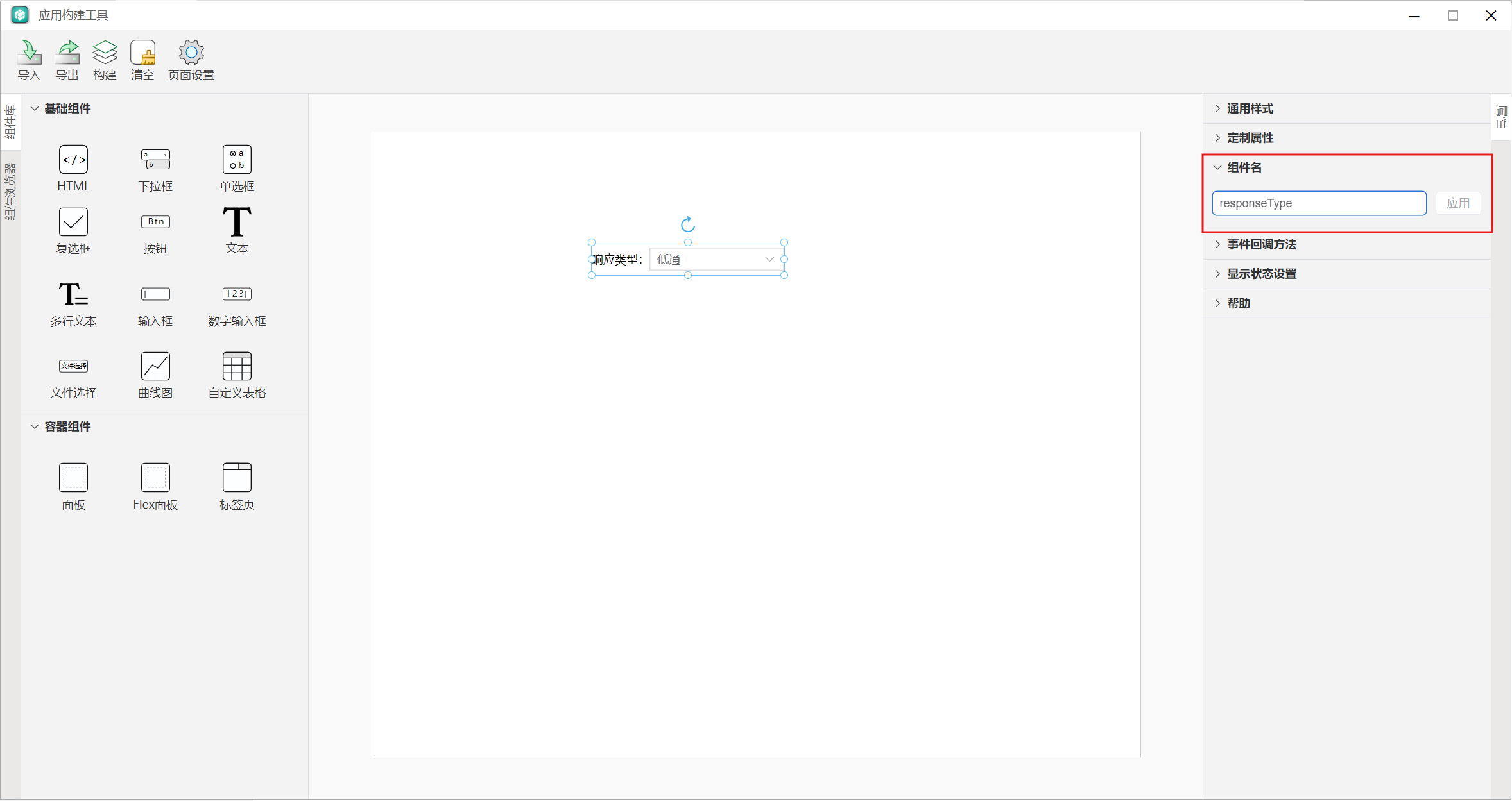 组件名是组件的唯一标识。组件的组件名在拖入的时候自动生成,也可以重命名。
