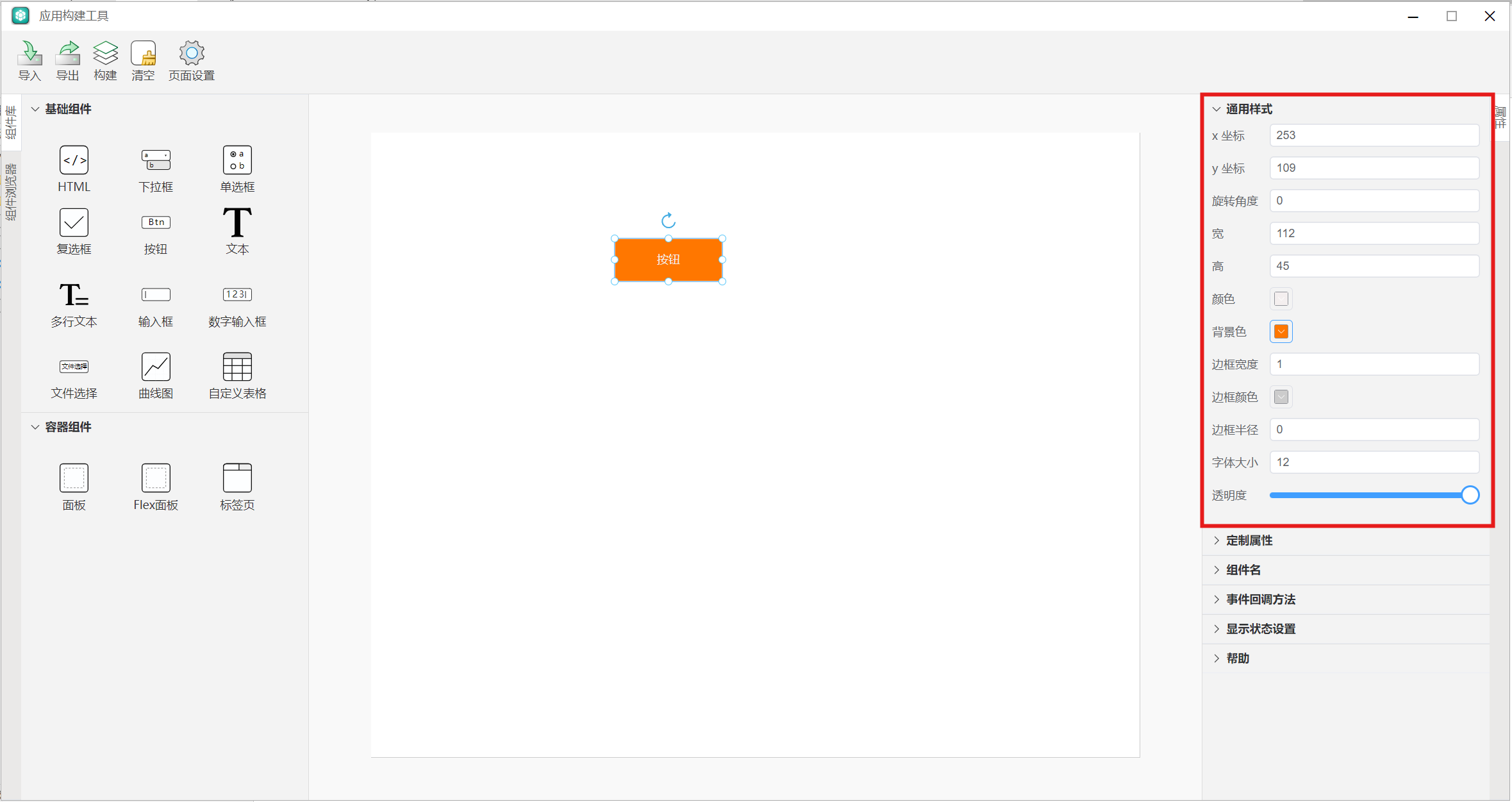 通用样式主要用于对组件的外观进行设置,一般可以设置宽高,位置,旋转角度等。
