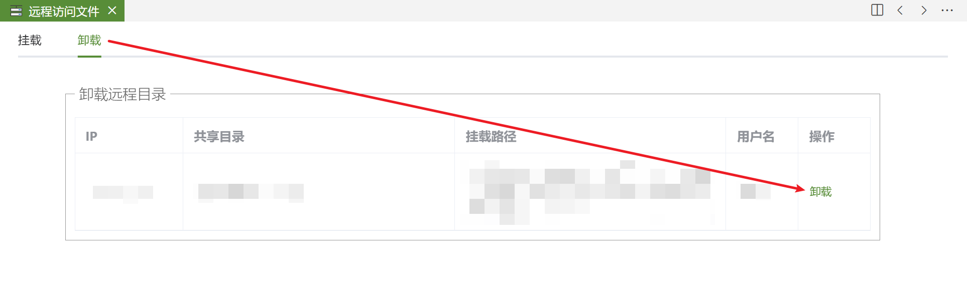 - 通过界面方式挂载/卸载远程目录会同步到配置文件中。