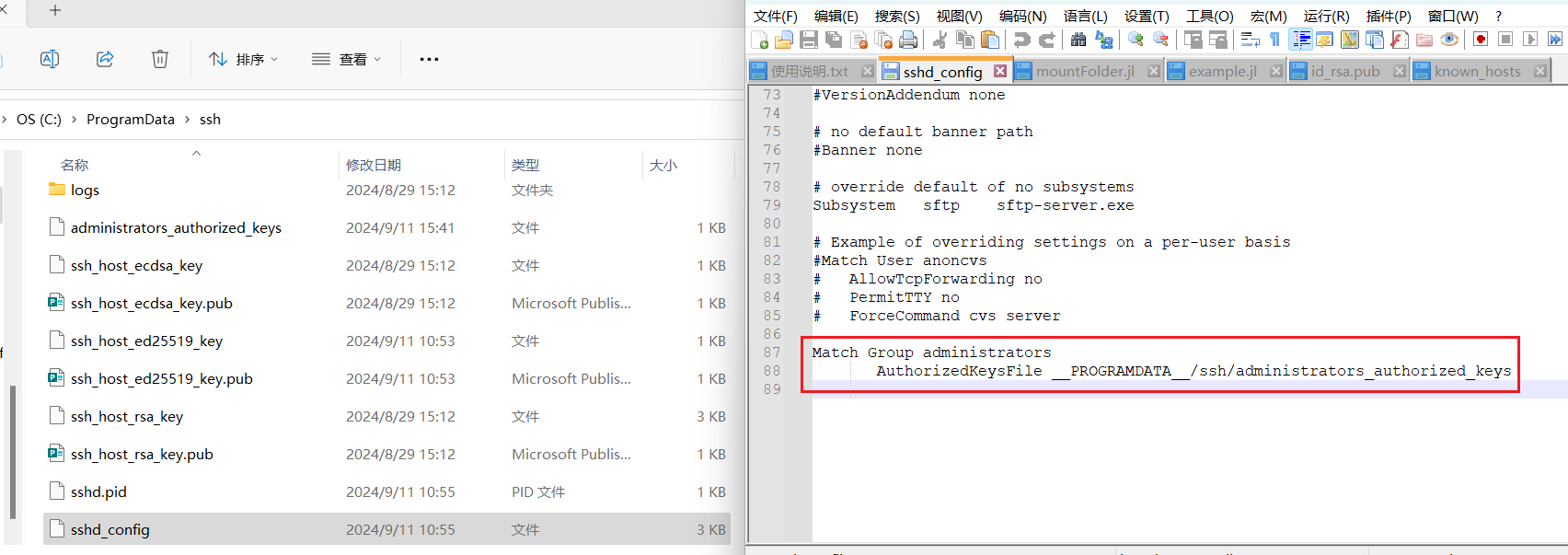 - C:\ProgramData\ssh\sshd_config 文件中没有以下内容,需要补充进去。