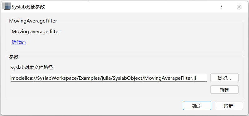 Untitled,请注意文件名需与类名一致,保存后此文件自动关联到 SyslabObject 组件如果您需要将 SyslabObject 组件关联到现有 Julia 对象文件,单击对话框中的 “浏览…” 按钮选择对应的 Julia 文件。您也可在文本框中输入文件路径,文件路径支持绝对路径和相对路径