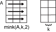 如果 A 是多维数组,则 mink 返回大小不等于 1 的第一个维度上的 k 个最小元素。