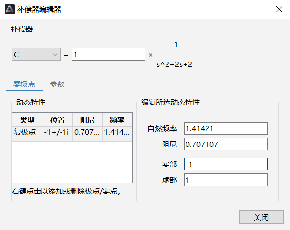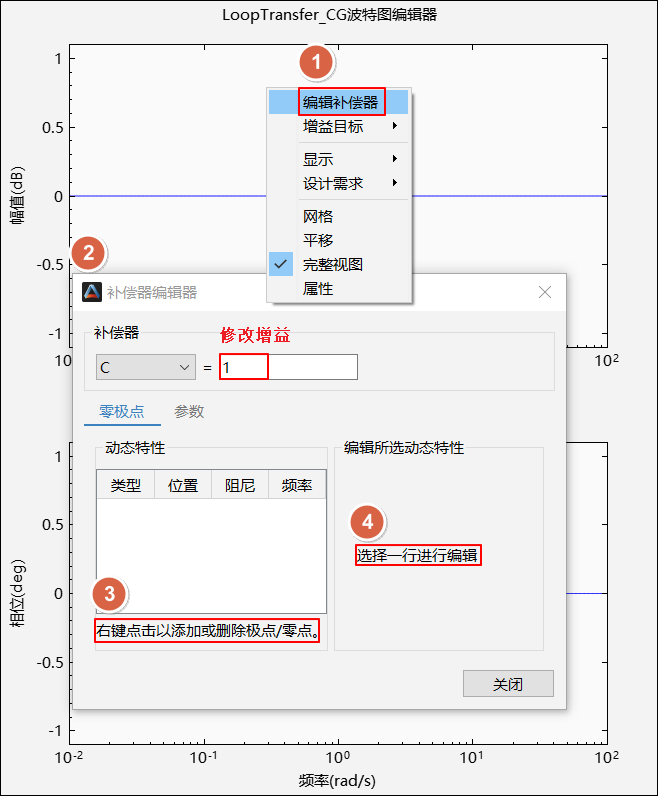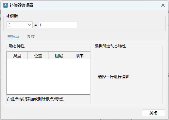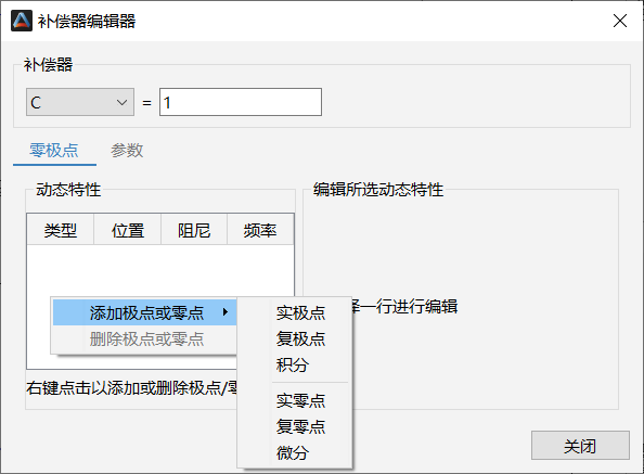 补偿器编辑器可以对补偿器进行修改增益、增删零极点、增删积分器和微分器等操作。