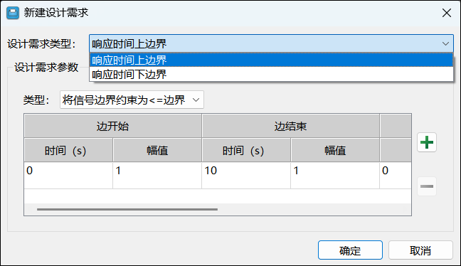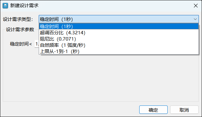 在设计需求参数部分中,配置需求属性。参数取决于所选择的需求类型。要创建指定的需求并将其添加到绘图中,单击确定。