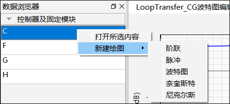 单击新建绘图进行特性曲线绘制 ,在中央视图绘制波特图。