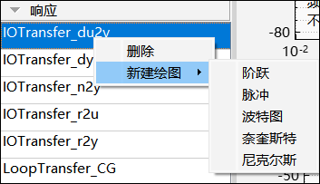 以列表形式展现当前控制系统架构对应的响应。通过上下文菜单可对响应进行删除和绘图响应曲线的操作。