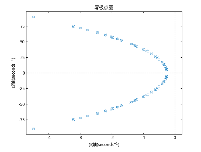 系统的传输零点,返回为向量,以系统时间单位(目前只支持:秒(seconds))的倒数为单位进行表示,向量元素按幅值降序排列。对于幅值相同的零点,其顺序优先级为:不稳定的零点==不稳定零点的共轭>稳定的零点==稳定零点的共轭。