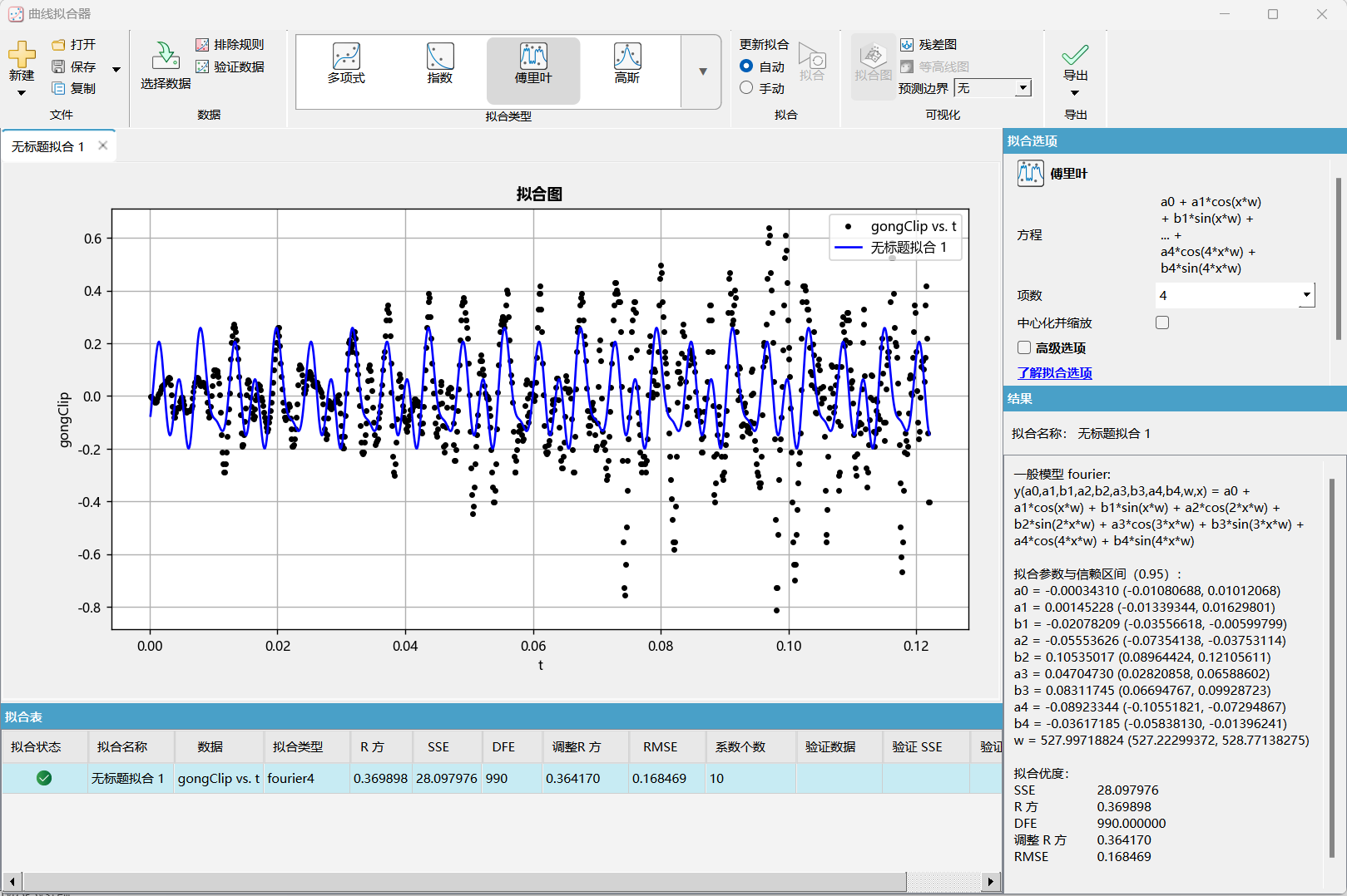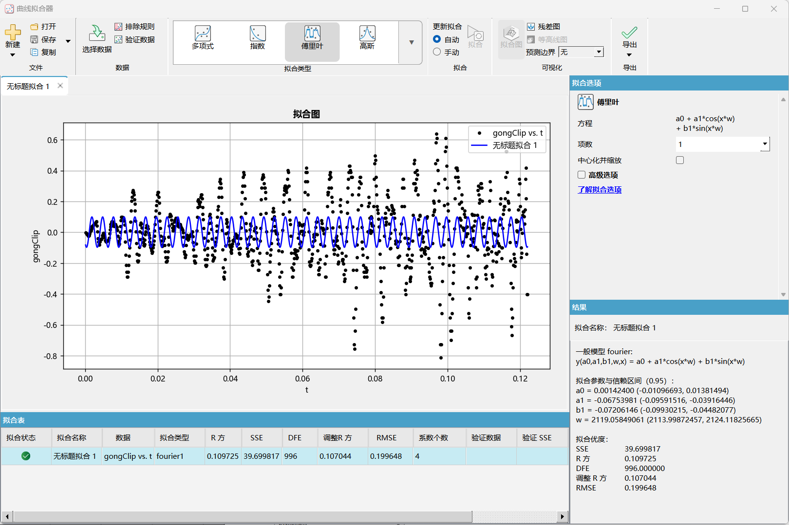 曲线拟合器拟合单项傅里叶模型。