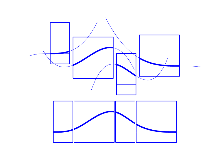 bspline(t,window) 在指定的子图窗口 window 中绘制具有节点序列 t 的 B 样条以及组成它的多项式片段。