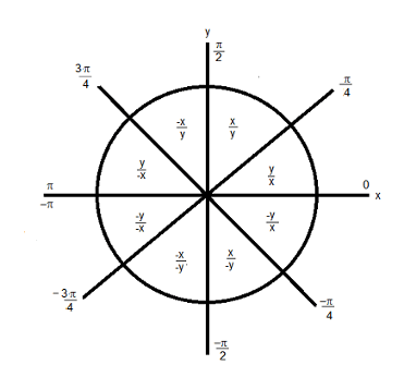 根据原始的 y 和 x 输入值,对得到的角值进行八分位校正。