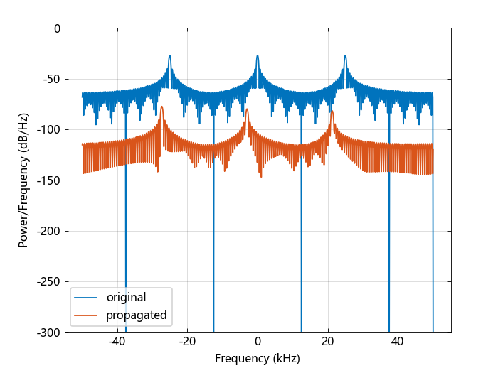 Pyy, F = periodogram(y, rectwin(size(x, 1)), 1024, fs, "centered"; nargout=2)